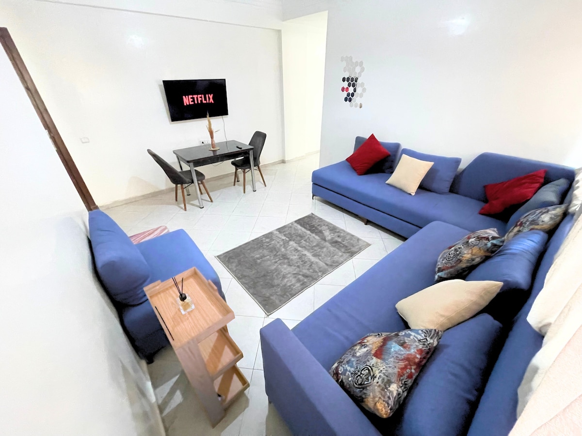 Welcome to a spacious, fully equipped and quiet apartment offering comfort and privacy. It features two elegant bedrooms, including a master bedroom with a private bathroom and TV. The apartment includes two air conditioners, a stylish living area, and all modern essentials for a relaxing stay. Conveniently located close to key facilities, shops, and popular restaurants, it is ideal for all guests looking for a comfortable short or long stay.