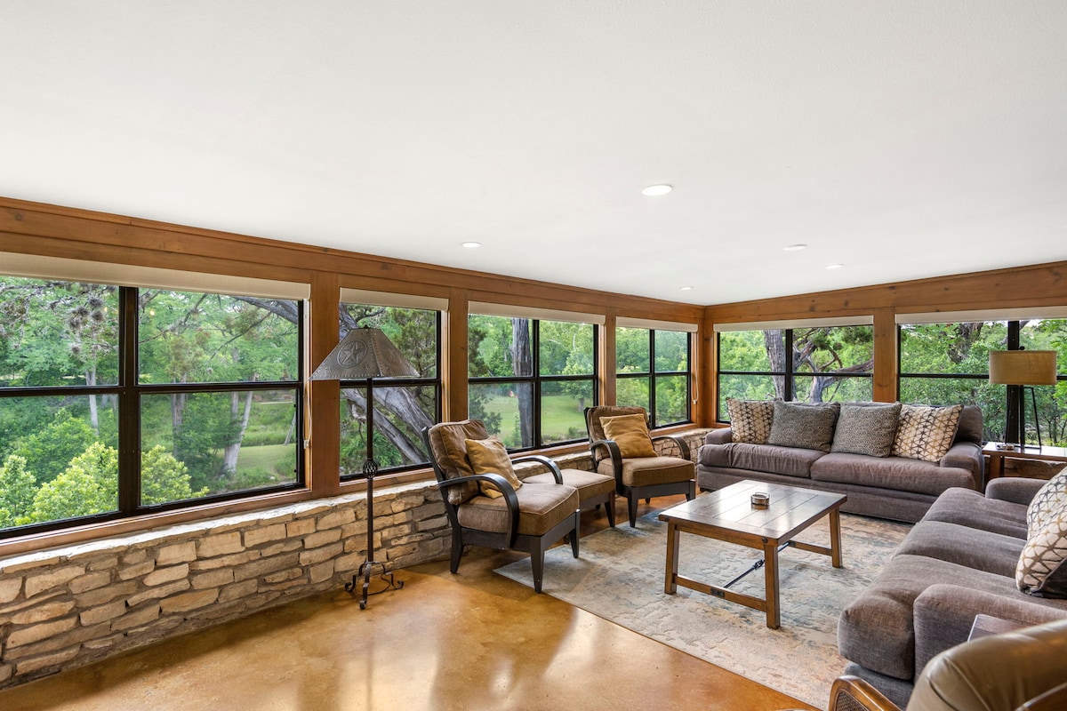 Möchtest du das Gefühl, dass du in den Bergen wohnst, aber in Texas wohnst? Das ist der richtige Ort für dich. Wenn du das Anwesen betrittst, fährst du einen Hügel hinauf, der sich um eine Forstwirtschaft mit Bäumen rund um das Anwesen schlängelt. Auf dem Gipfel des Hügels wirst du von einem modernen Haus begrüßt, das über den Bäumen ragt, um eine unvergessliche Aussicht zu bieten, die sanfte Hügel so weit wie du sehen kannst. Es ist wirklich ein magisches Erlebnis, das sich vom Alltag des normalen Lebens erholt.