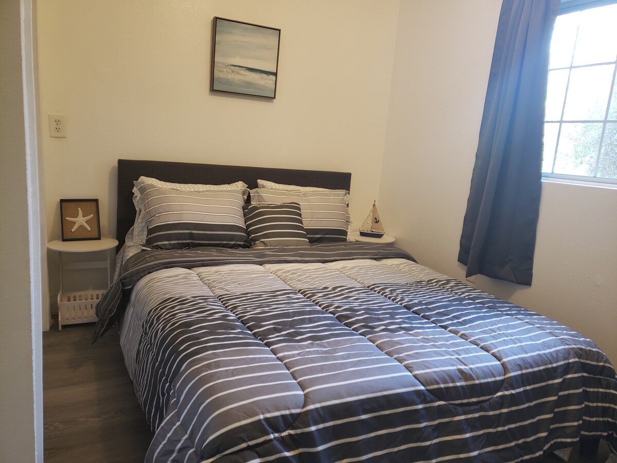 Fühle dich in diesem ruhigen Bungalow wie zu Hause, wo du ein modernes Design, einen offenen Grundriss und alle Annehmlichkeiten findest, die du für einen angenehmen Aufenthalt benötigst. Das Gerät ist komplett separat und nicht am Haupthaus befestigt. Es ist 1 von 2 Bungalows, die hinten liegen und nebeneinander liegen. Der Bungalow bietet viel Privatsphäre und liegt auf einem Hügel inmitten üppiger Vegetation und einem schönen, gepflegten Innenhof. Sie werden es lieben, Zeit im Freien für etwas Entspannung und Ruhe zu verbringen.