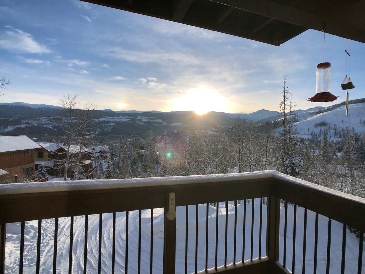 Diese stilvolle Eigentumswohnung im Obergeschoss befindet sich im Herzen von Winter Park und verfügt über 2 Schlafzimmer und 2 Badezimmer, die perfekt gelegen sind, um alle deine Urlaubsbedürfnisse zu erfüllen. Bequeme Ski-Shuttle-Abholung/-Rückgabe vor der Haustür! Die Wohnung liegt versteckt an einem schönen Hang, was Privatsphäre und Panoramablick ermöglicht, nur ein paar Häuserblocks von Restaurants/Bars entfernt. Sie verfügt über zwei Queensize-Betten, ein Schlafsofa, eine voll ausgestattete Küche, einen Holzofen, eine geräumige private Terrasse, Oberlichter und neue Möbel.