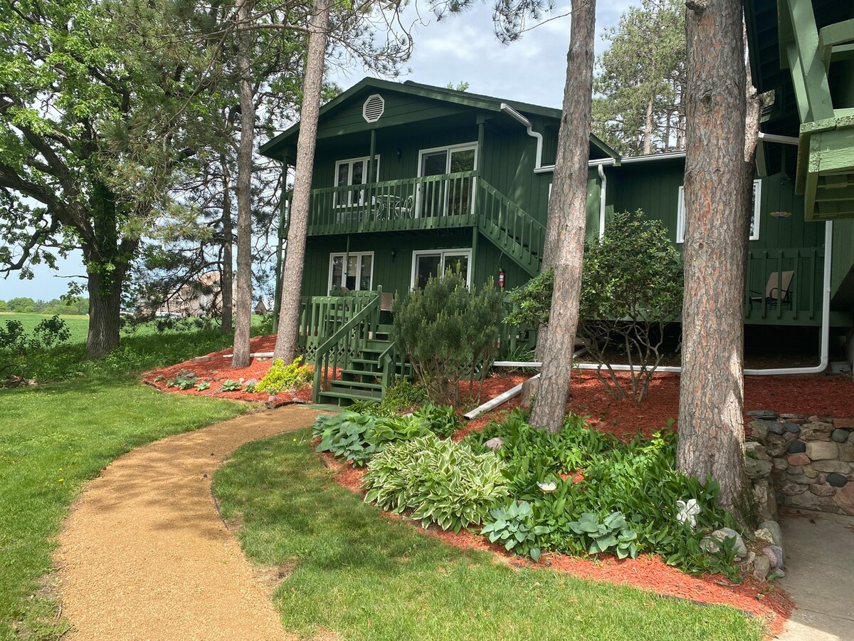 1. Stock, 1 Queensize-Bett, Mikrowelle, Kühlschrank, Dusche, haustierfrei. Currier's Lakeview Lodge ist ein exklusives Anwesen am Ostufer des Rice Lake, Wisconsin. Unsere Unterkunft bietet jeden Morgen Fair-Trade-Kaffee, Gebäck aus unserer lokalen Bäckerei und frisches Obst der Saison, während du den Sonnenaufgang von unserem Deck aus beobachtest. Wir bieten auch Grills und Raucher auf dem Deck zum Kochen und Beisammensein an. Nicht motorisierte Boote sind bei deinem Aufenthalt kostenlos. Kein ZIMMER FÜR HAUSTIERE
