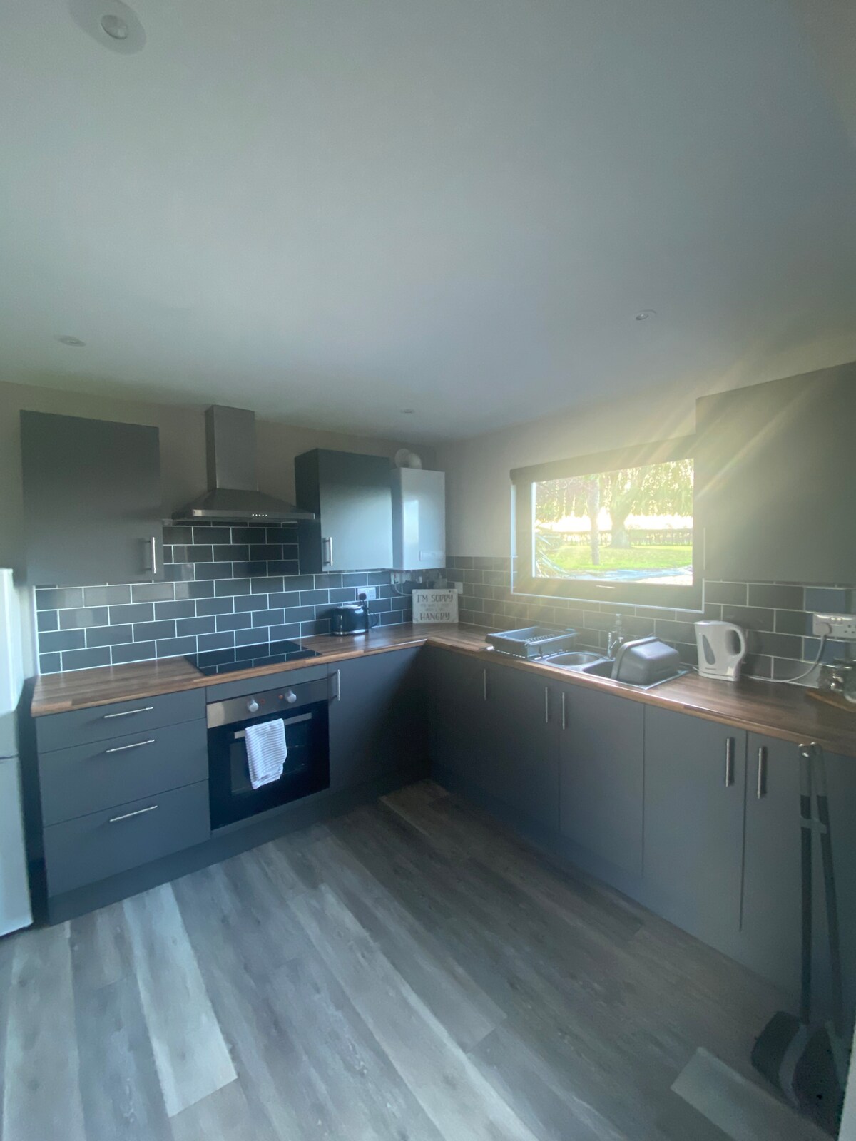 Nimm dir eine Auszeit und entspanne dich in dieser ruhigen, stilvollen, ländlichen Unterkunft. Genieße die Zeit in der luxuriösen Umgebung, umgeben von Ackerland und schöner Aussicht mit deinen Annehmlichkeiten. Genieße die Aussicht von deinem Super-Kingsize-Bett, der großen freistehenden Badewanne oder dem Juliet-Balkon. Entspanne dich im großen Wohnbereich und sieh dir deine Lieblingsfilme auf dem 75-Zoll-Smart-TV mit WLAN und Surround-Sound an. Du hast eine Küche, die mit einem elektrischen Ventilatorherd und 2 Kochfeldern ausgestattet ist, um deine Mahlzeiten zu kochen, und einen Esstisch, um sie zu essen.