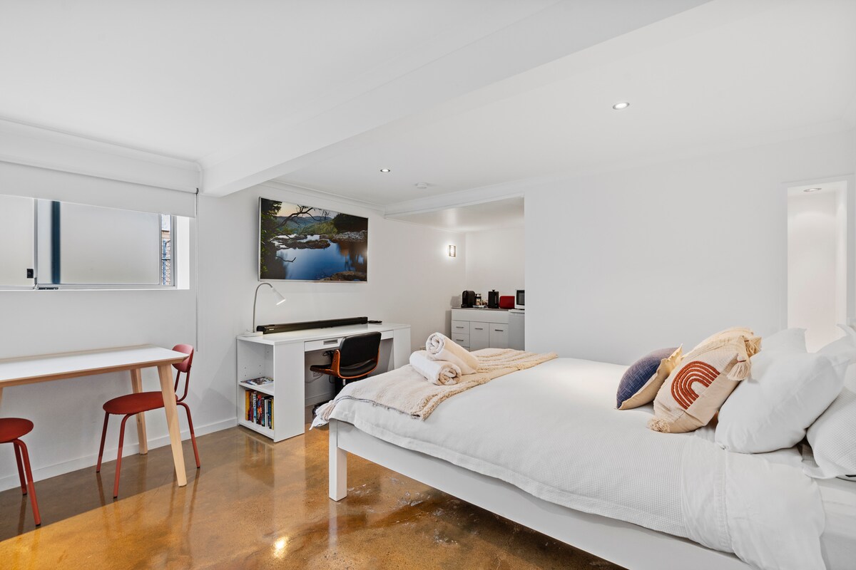 Willkommen in unserer charmanten, haustierfreundlichen Studio-Einliegerwohnung, einem gemütlichen und stilvollen Rückzugsort, der perfekt für Singles oder Paare ist, die Brisbane besuchen oder an lokalen Veranstaltungen teilnehmen. Eingebettet in eine ruhige, grüne Ecke von Coorparoo bietet dieses Studio sowohl Komfort als auch Privatsphäre mit einem separaten Eingang, sodass du nach Belieben kommen und gehen kannst. Egal, ob du mit einem pelzigen Freund reist oder einfach nur einen erholsamen Kurzurlaub suchst, unsere Unterkunft ist so konzipiert, dass du dich wie zu Hause fühlst.