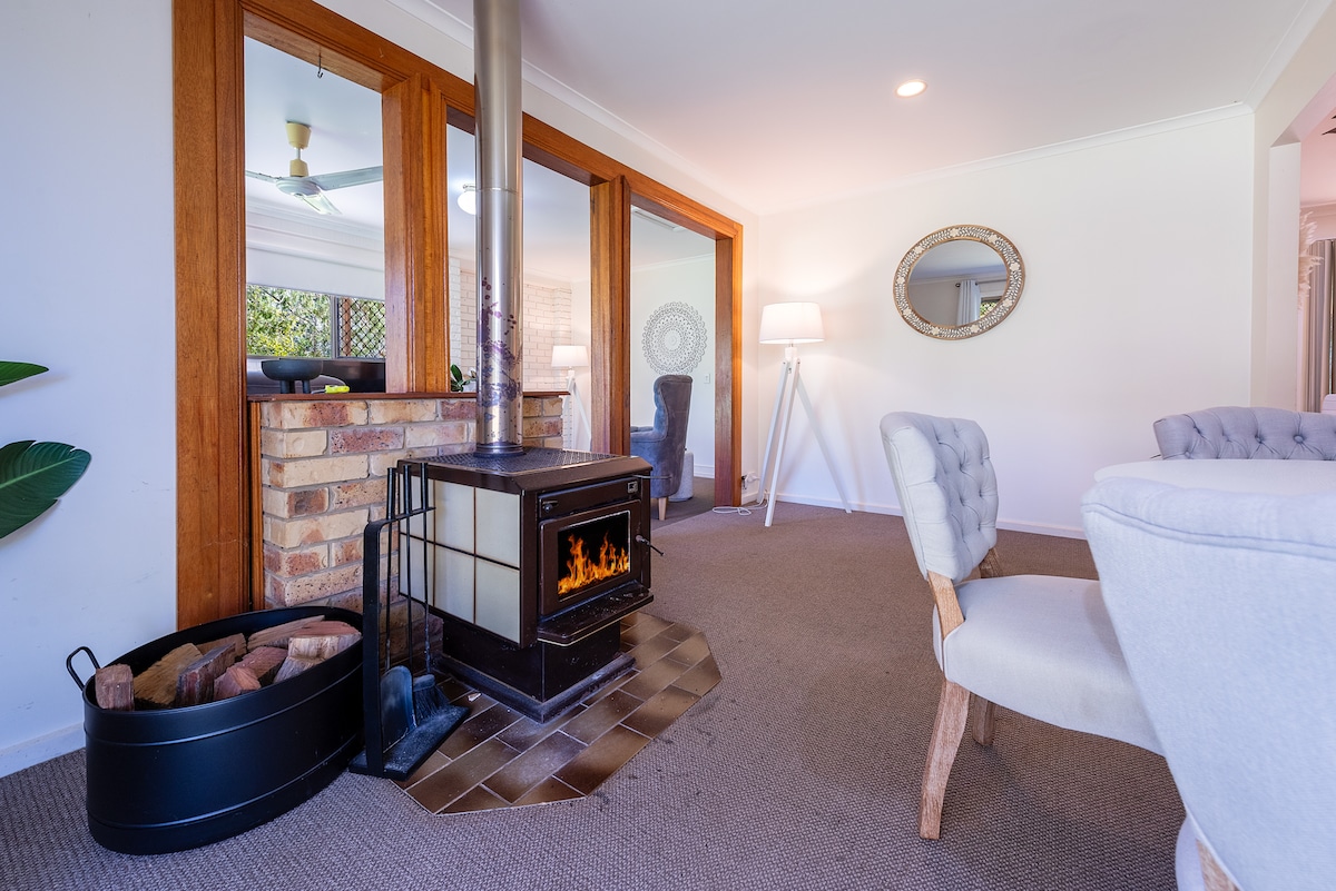 Ein entspannter Aufenthalt mitten im Herzen von Eumundi, aber mit Raum zum Atmen... Nur 300 m vom Stadtzentrum (Heimat der berühmten Eumundi-Märkte) und nur eine kurze 20-minütige Fahrt von Noosa entfernt, aber du würdest es nie erfahren! Mit Blick auf einen Damm und umgeben von Bäumen und Wildtieren, machen die friedlichen Klänge der Natur es zum perfekten Ort, um sich zu entspannen, zu erholen und wieder zu verbinden... Beobachte die Wallabys am Nachmittag vom Außenbad oder der Feuerstelle aus grasen oder mach es dir neben dem Innenkamin mit einem guten Buch gemütlich...