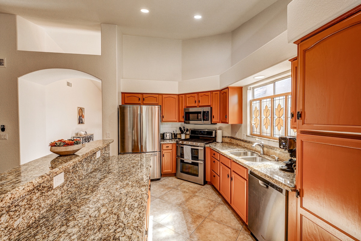 The Hill's Bungalow, eine wunderbar charmante Casita mit separatem, privaten Eingang und Parkplatz. Gehe morgens hinaus, beobachte den Sonnenaufgang und setze dich auf die private hintere Veranda, um den Sonnenuntergang zu erleben. Individuelle Oberflächen und große Fenster öffnen sich zu einer Gourmet-Küche/großem Gemeinschaftsraum, einem halben Bad, 50-Zoll-TV und Highspeed-WLAN. Ein Kingsize-Bett mit einem großzügigen, kompletten Bad macht das Entspannen einfach. Zu Fuß zu Wanderwegen, eine 2-minütige Fahrt zur Innenstadt von FH, 10 Minuten nach Scottsdale oder 35 Minuten nach Sky Harbor.