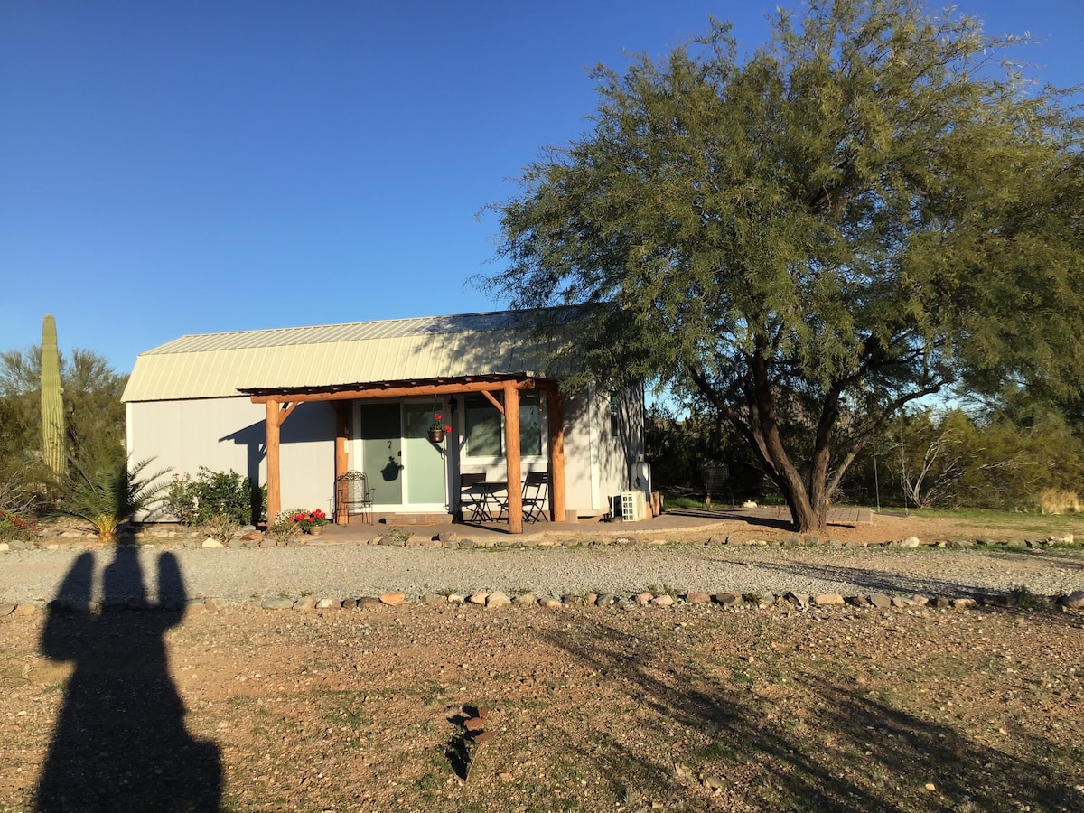 Casita del Sol Poniente is a newly built guest house in a quiet neighborhood 5 minutes from historic downtown Wickenburg. A full kitchen, separate bedroom and in unit laundry makes this a perfect getaway. With convenient access to the park and walking trails, there is something here for everyone. The front porch is a fantastic place to have a cup coffee, gaze at the mountains and watch the sunrise. But the beautiful Arizona sunsets will be worth remembering for a lifetime.