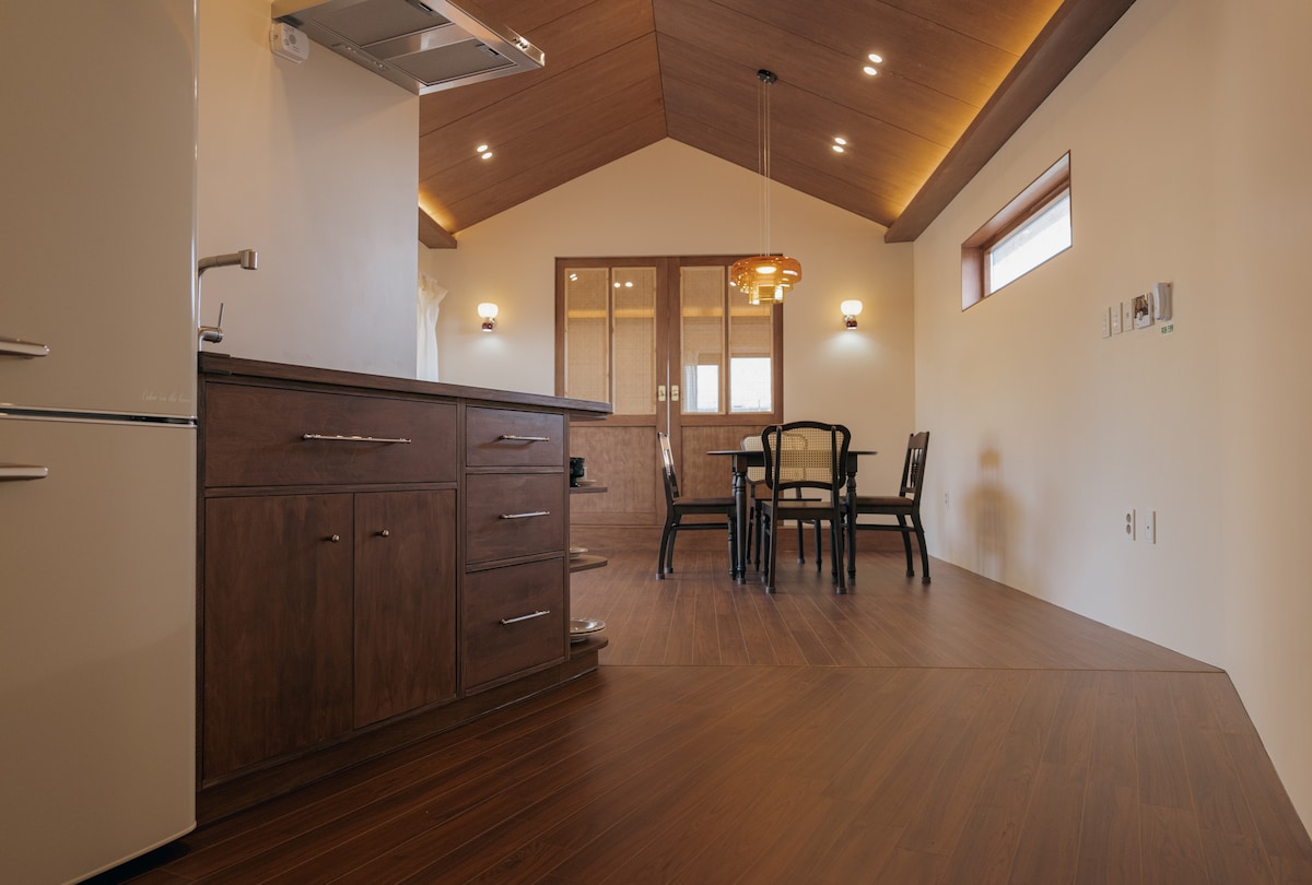 Wir haben einen klaren und schönen Sehwa Beach im östlichen Teil von Jeju. Es ist in der Nähe Es ist gut für Reisen im östlichen Teil von Jeju Udo, Seongsan, Gimnyeong, Woljeong-ri usw. Auf der Vorderseite befindet sich ein Café, das der Frühstücksbereich ist. Bitte bewahre die Etikette des zentralen Hofes und des Cafés auf. Vom Café bis zum Hof gibt es einen großen Hundeschlittenhund, einen Malamute, ein Maskottchen, also finde bitte einen anderen Ort, wenn der große Hund belastend ist und du deinen eigenen gesamten Raum möchtest. Wir haben keine Küchenkochutensilien in allen Privathäusern, daher können wir kein Essen kochen, und es gibt einen Kühlschrank, eine Mikrowelle und einen Wasserkocher, sodass nur verpackte Lebensmittel und einfache Lebensmittel möglich sind. Bitte achte nach 23:00 Uhr auf Goseongbang in einem ruhigen ländlichen Dorf. Der Bus 201 von Jeju City nach Seogwipo ist 3 Gehminuten entfernt und ein Supermarkt ist 5 Gehminuten entfernt. Das Haenyeo Museum und der schöne Sehwa Beach sind weniger als 10 Minuten zu Fuß entfernt, und wenn du den Expressbus 101 vom Flughafen nimmst, ist es weniger als 10 Minuten zu Fuß von der Sehwa Station entfernt, und du kannst ihn abholen, wenn du uns kontaktierst. Gimnyeong-eup und Seongsan-eup sind 10 Autominuten entfernt, und Udo Port und Jeju East Oreum sind ebenfalls in der Nähe.
