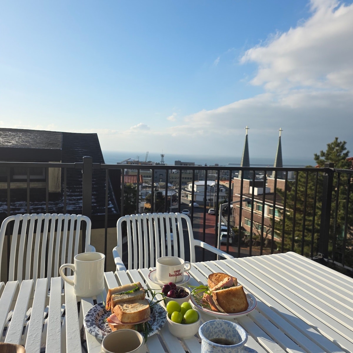 Gemütlicher Morgen in Jeju – mit privatem Whirlpool im Freien
