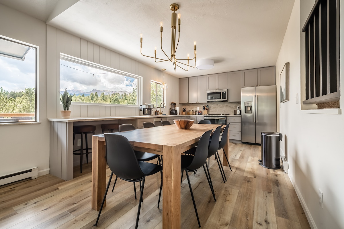 Genieße das ultimative Retreat-Erlebnis in der bezaubernden Tecumseh Lodge in der Nähe von Pike's Peak, nur eine 15-minütige Fahrt von der Innenstadt von Woodland Park entfernt. Entfliehen Sie einer Oase, die für Gelassenheitssuchende, Naturliebhaber und Fernarbeiter gleichermaßen entworfen wurde. Wache mit einem goldenen Sonnenaufgang auf unserer geräumigen Terrasse mit gemütlichen Möbeln und einer wärmenden Raumheizung auf. Entspanne dich am Abend in unserem Whirlpool, umgeben von allen Sternen und der Natur. Buche deine Flucht in der Tecumseh Lodge für eine luxuriöse Mischung aus Komfort und Natur.