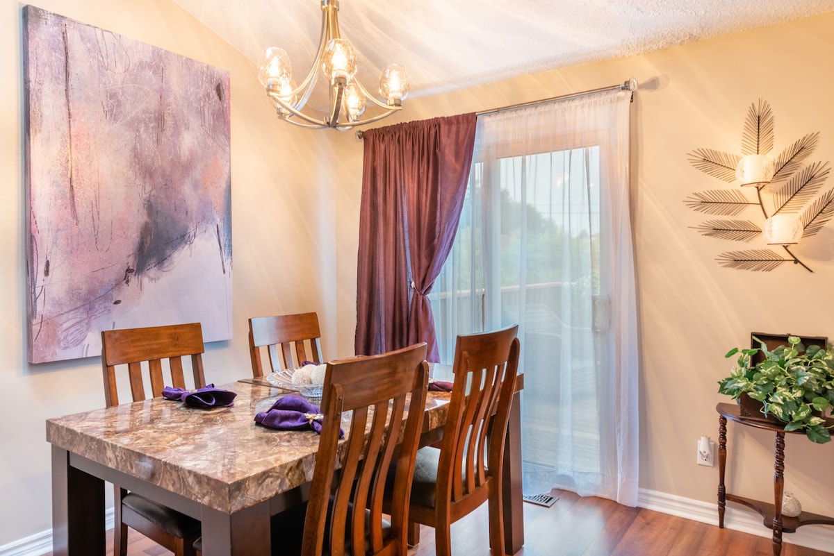 Willkommen zu deinem perfekten Kurzurlaub im Herzen von Woodstock! Diese gemütliche Wohnung im zweiten Stock verbindet Komfort und Bequemlichkeit. Genieße 2 einladende Schlafzimmer mit luxuriösen Matratzen für eine erholsame Nachtruhe! Eine voll ausgestattete Küche und ein offener Wohnbereich mit Roku TV und WLAN. Du hast einfachen Zugang zu lokalen Geschäften, Restaurants, Krankenhaus und der 401/403, wenn du bei uns übernachtest. Erkunden Sie den nahe gelegenen Southside Park oder fahren Sie eine kurze Strecke in die wunderschöne Landschaft und zu den malerischen Wanderwegen!