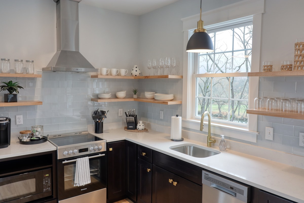 Erstaunliche Bergblick von dieser modernen skandinavisch inspirierten Gästesuite im Herzen des Shenandoah Valley!! In der Nähe von Wanderwegen, Weingütern und dem Fluss! Genieße eine Tasse Kaffee auf der Terrasse und beobachte, wie die Sonne über den Bergen aufgeht, entspanne dich und schaue dir einen Film auf dem mit der App verbundenen Flachbildfernseher an, erfrische dich in der übergroßen Dusche mit mehreren Duschköpfen, einschließlich einer Regenfunktion. Diese Suite mit zwei Schlafzimmern verfügt über einen eigenen Eingang, eine private überdachte Terrasse mit Bergblick und einen Parkplatz nur wenige Schritte entfernt.