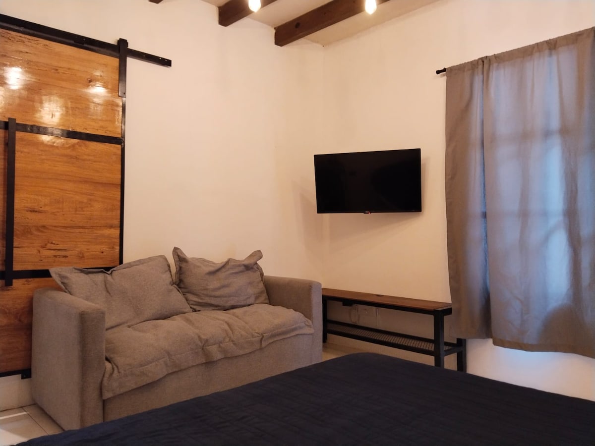 Entdecken Sie unser gemütliches Studio in einem restaurierten Haus mit dem Charme der alten Architektur von Coatepec. Das Hotel liegt in der Nähe des historischen Zentrums, nur einen halben Block vom Markt entfernt. Es ist der perfekte Ausgangspunkt, um die Cafés, Restaurants und das traditionelle Wesen von Coatepec zu Fuß zu erkunden. Ein warmer und geräumiger Raum, ideal für deinen Aufenthalt!