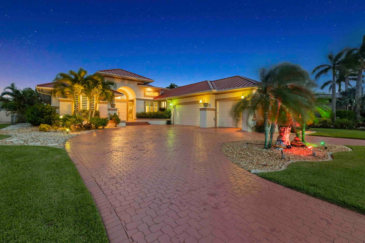 EINE DER BESTEN UFERGEGENDEN IN CAPE CORAL! Nur einen kurzen Spaziergang vom Strand entfernt. Dieses über 230 Quadratmeter große Haus bietet atemberaubende Sonnenuntergänge und einen südwestlichen Blick auf das Wasser von allen wichtigen Wohnbereichen sowie der Master Suite. Beheizter Pool mit farbiger LED-Beleuchtung, eingebautes Spa, Poolbad, komplette Waschküche, Lanai, Kamin, WLAN und TVs in jedem Schlafzimmer, privater Anlegesteg. Boot auf Hebebühne zu vermieten bei RPM-Vermietungen. Große 2-Auto-Garage mit 5 Fahrrädern, Strandwagen und Kühler vor Ort.