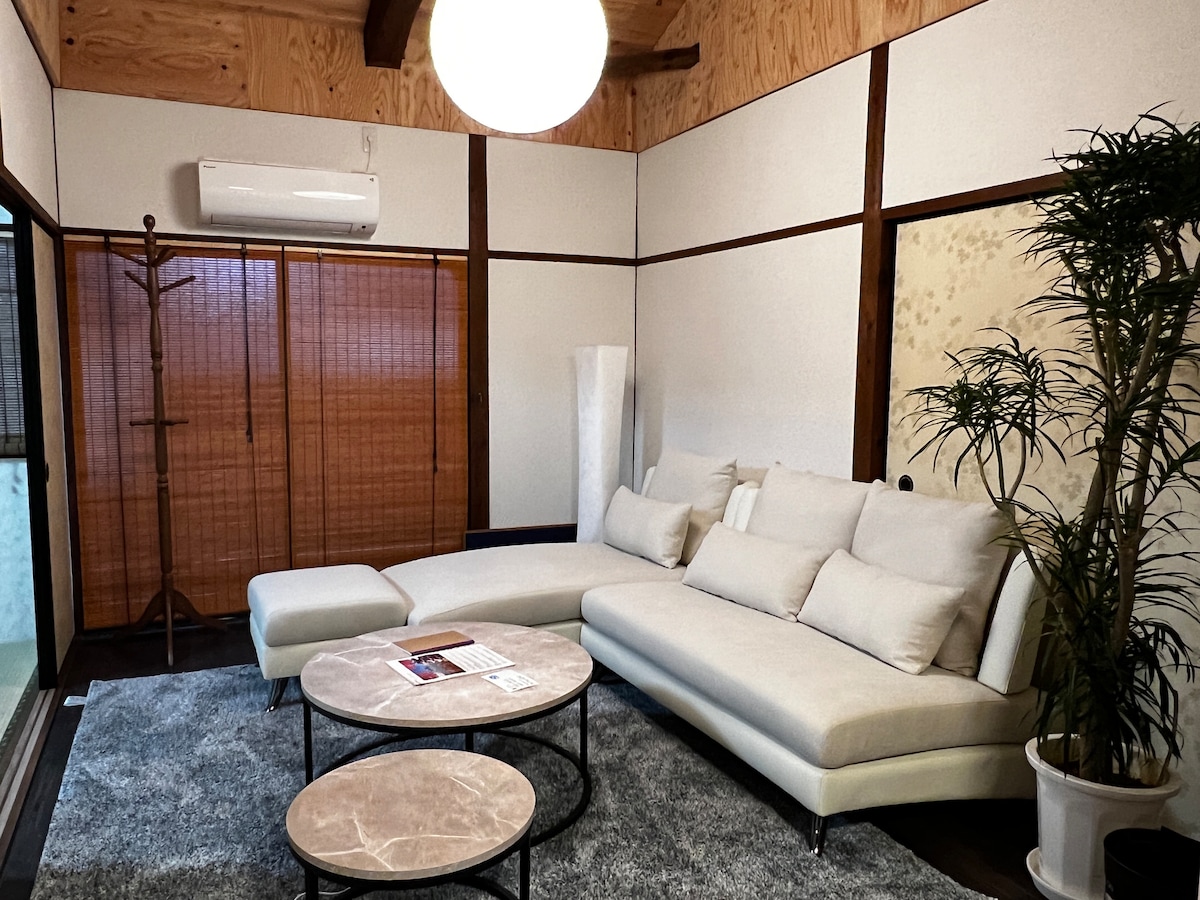 Dieses 60 Jahre alte traditionelle Haus wurde komplett renoviert und bietet Gästen ein tiefes Gefühl von „Japan“ und „Nara“. Erlebe unseren traditionellen „Futon“ oder ruhe dich bei längeren Aufenthalten bequem in unseren Betten aus. Unser Garten mit zwei Themen bietet eine ruhige, Nara-ähnliche Atmosphäre und einen lustigen Spielbereich für Kinder mit einer großen Rutsche. Familien können ihre Kinder von innen beobachten. Unsere Unterkunft wird von Profis gereinigt und mit brandneuen Sanitäranlagen ausgestattet, wobei die Hygiene Priorität hat.