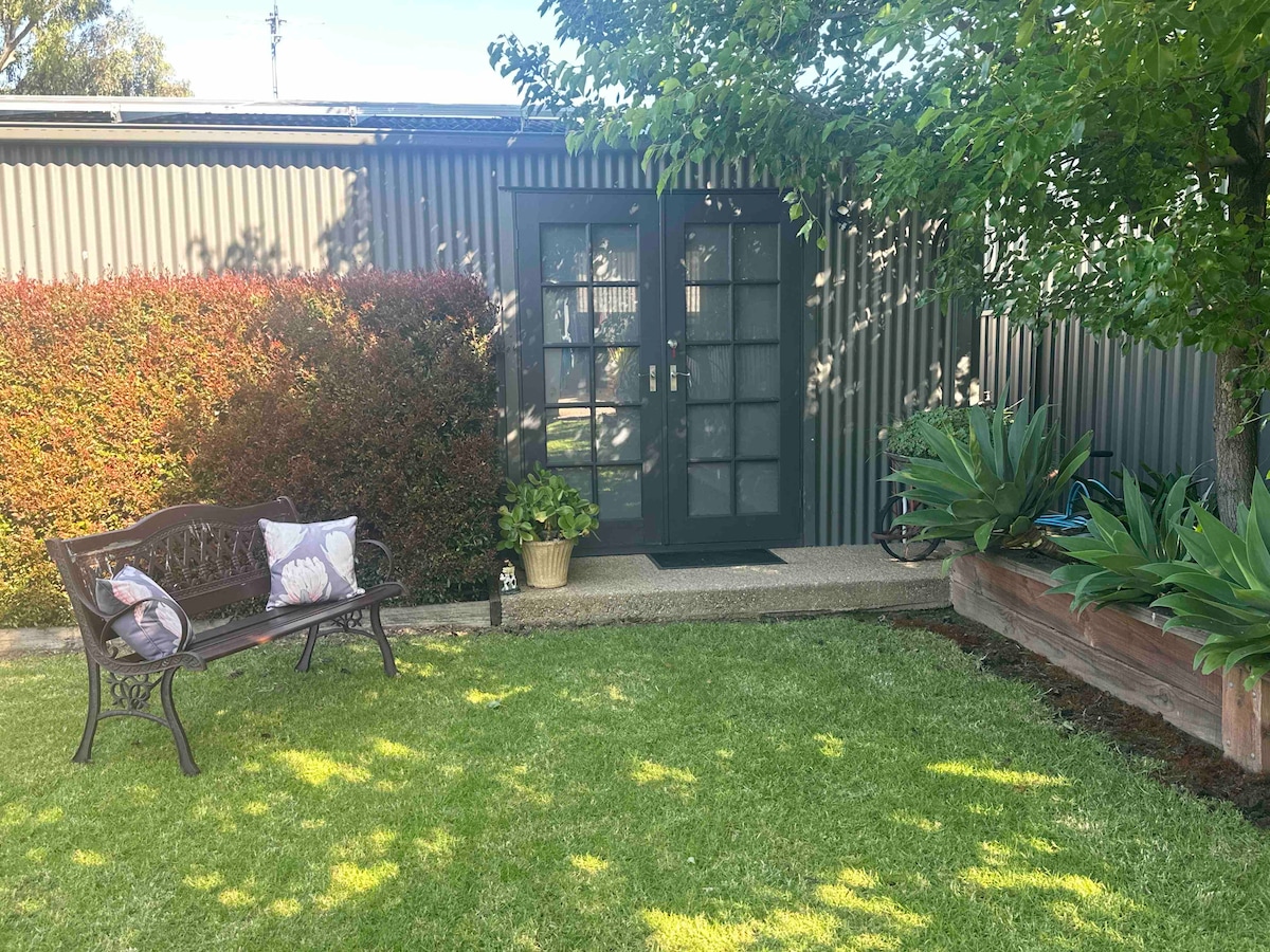Relax in this modern and stylish guesthouse. Fully self contained with king size bed, ensuite with walk in shower, heated towel rail, vanity and toilet, front load washing machine and dryer, split system air conditioning, comfortable couch (sofa bed available on request) bar style bench with stools, kitchen with an air fryer, electric hot plates, microwave, kettle, toaster, pod coffee machine with milk frother, glasses, utensils, crockery and everything necessary to whip up a meal.