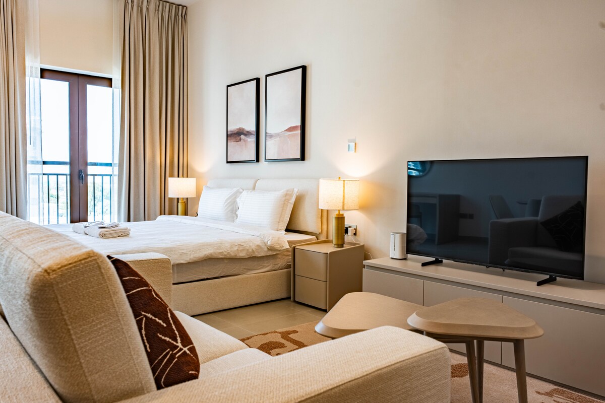 Entspannen Sie sich bei diesem ruhigen Kurzurlaub. Unser gemütliches Studio bietet einen atemberaubenden Blick auf den Golfplatz, perfekt zum Entspannen. Genieße eine atemberaubende Aussicht vom Balkon oder mache einen gemütlichen Spaziergang rund um den Golfplatz. Die Attraktionen von Yas Island, darunter Ferrari World, Yas Mall und F1 Circuit, sind zu Fuß erreichbar. Entspanne dich, entspanne dich und tanze neue Energie in unserem ruhigen Studio. Buche jetzt und plane deinen Traumurlaub auf Yas Island! Perfekt für Paare, Alleinreisende und Familien.