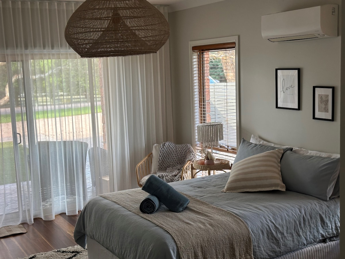 Vergiss deine Sorgen in diesem geräumigen und ruhigen Raum. Diese Wohnung mit einem Schlafzimmer ist komplett vom Hauptwohnsitz getrennt und verfügt über ein Doppelbett, eine voll ausgestattete Küche, ein Badezimmer, eine Waschmaschine, einen Frühstückstisch und einen Lounge-Bereich. Unser 20 Hektar großes Anwesen liegt inmitten der Kiefern im ländlichen Vorort Wamboin und ist 15 Minuten vom Flughafen Canberra und 25 Minuten vom CBD von Canberra entfernt. Zu den Wanderwegen gehören die Molonglo-Schlucht, der Kowen Forest und die Majura Pines.