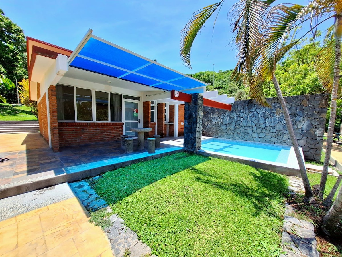 Entspanne dich mit deinem Partner, deiner Familie oder deinen Freunden in diesem schönen Haus mit 3 Schlafzimmern und direktem Blick auf den Pool im Gemeinschaftsbereich. Wir bieten Ihnen an: -Lounge/Esszimmer - Küche mit Kühlschrank und Mikrowelle -Außenzimmer - klimatisierter Whirlpool -Klimaanlage (A/C) Drei geräumige Schlafzimmer -3 Badezimmer -Alberca und Grill im Gemeinschaftsbereich - Wander- und Wanderräume ohne Gefahr - Lebensmittel, Lebensmittel ganz in der Nähe der perfekten Lage. - Zugang zum Clubhaus