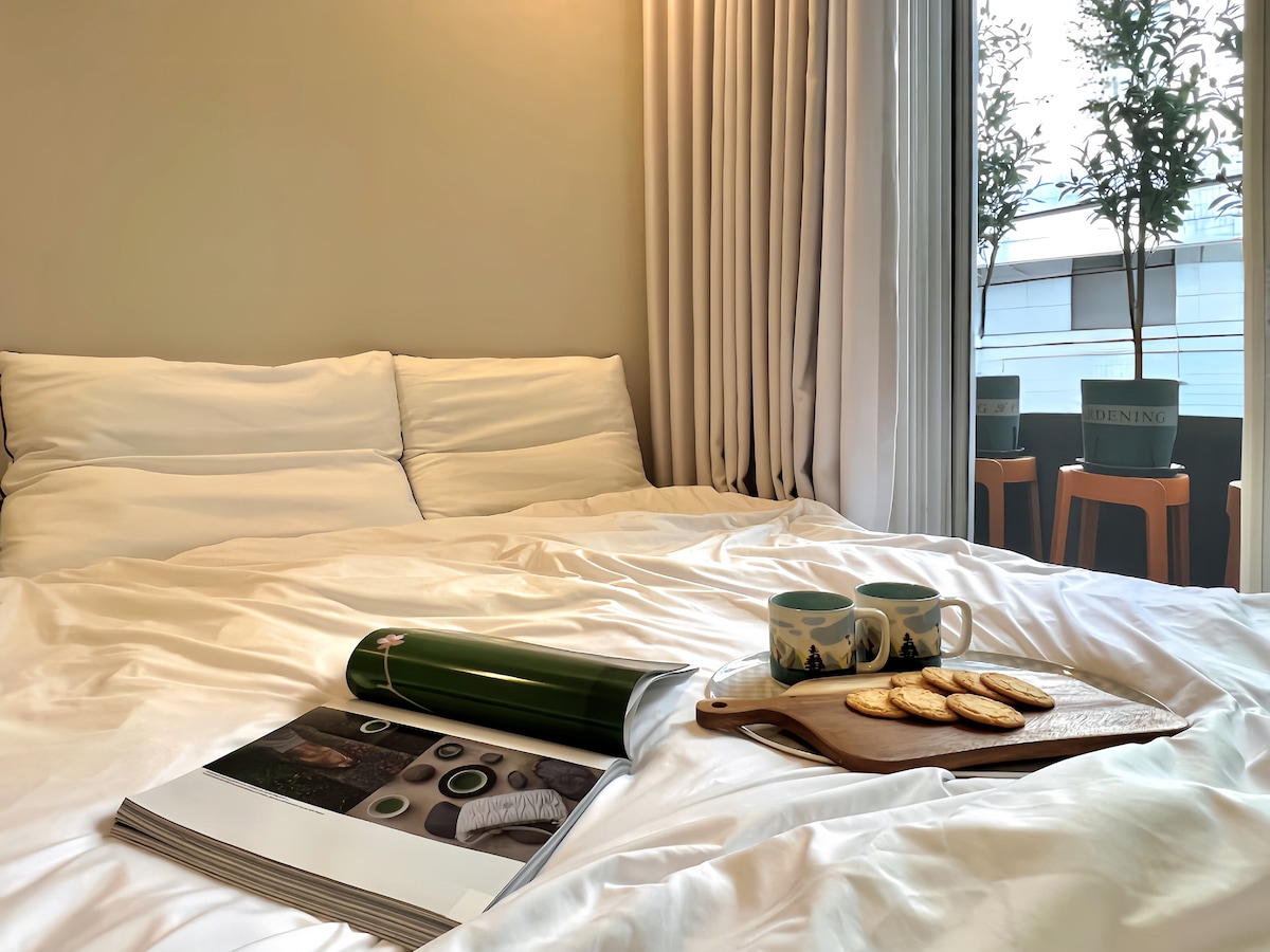 [단독 욕실 | 지하철 도보 6분] 맛집 카페 가득한 상권 속 깔끔하고 아늑한 숙소*201