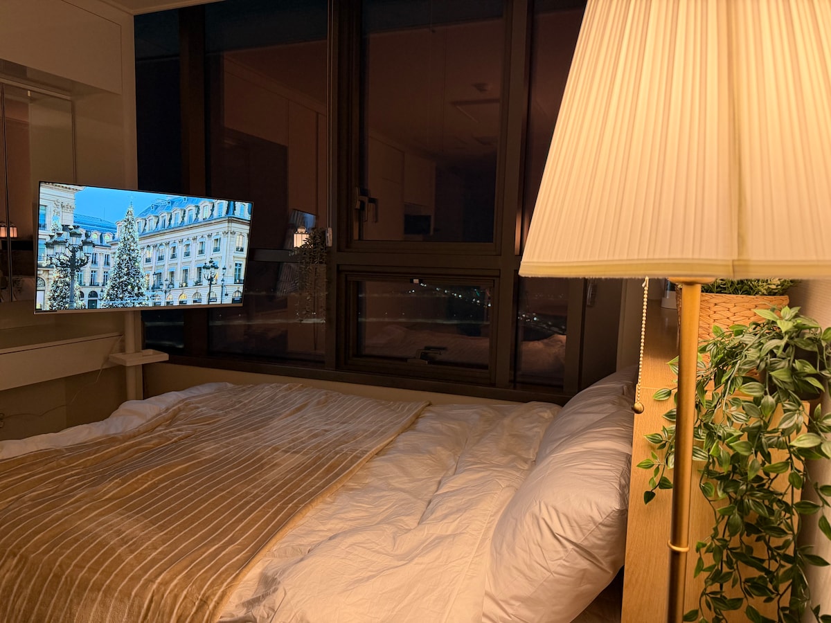 최고급 킹사이즈 침대에서 편안하게 잘 수 있어요☺️ 송도 달빛축제공원과 G타워, 연세대 국제캠퍼스, 인천대, 송현아 등이 인근에 위치해있어 일정 후 머물기 좋아요🫠 쇼파에 기대어 넓은 스마트TV로 넷플릭스, 유튜브를 보며 하루를 마무리해보세요🎉 필요나 선호도에 따라 좌식식탁, 책상을 자유롭게 배치하여 공간을 마음껏 누리세요😉 숙박 일수(연박)가 늘어날수록 숙박단가가 저렴해져요🫢 호스트는 언제나 게스트의 말에 귀를 기울입니다. 필요한 사항이나 개선해야 할 사항이 있다면 언제든 말해주세요😌