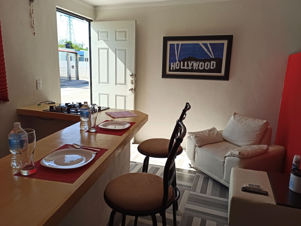 "Hospedaje empresarial con factura disponible." Departamento moderno en Altabrisa, ideal para familias pequeñas hasta 3 personas, la cual cuenta con: Habitación con una 1 cama matrimonial y 1 cama individual, Smart TV para que disfrutes de tus series y películas favoritas. Una pequeña terraza privada Incluye: Baño completo con agua caliente. Cocina totalmente equipada para preparar tus comidas favoritas. Sala y comedor climatizados Garaje Internet de alta velocidad, ideal para trabajar