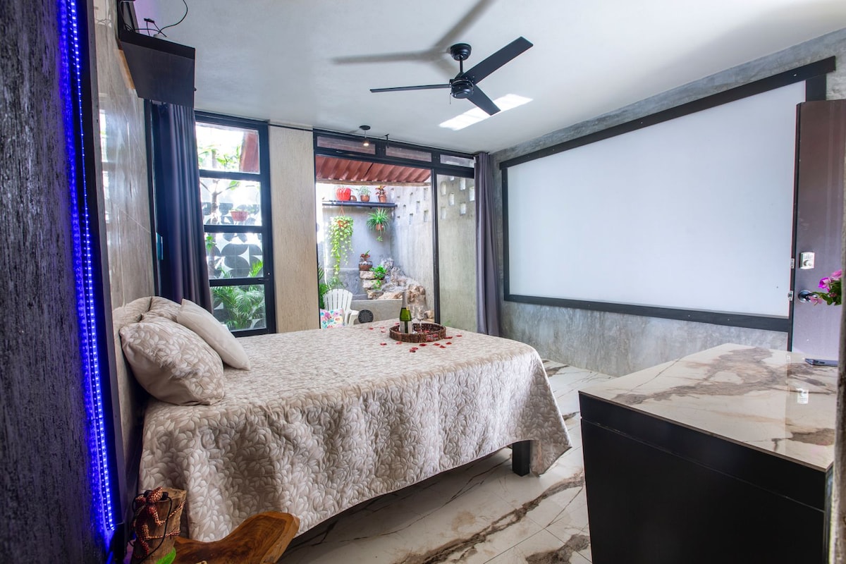 Perfekt für Strand- und Naturliebhaber, die einen ruhigen Kurzurlaub suchen! Einer der besten privaten Standorte auf der Insel, mit direktem Zugang zu einem Sandstrand, an dem du Wassersport treiben oder einfach am Ufer entspannen kannst. Nur eine 5-minütige Fahrt von Cozumels Innenstadt entfernt. Diese neu renovierte Suite verfügt über alles, was du für einen angenehmen Aufenthalt benötigst, einschließlich: eine offene Außenterrasse, ein großes Studio, ein eigenes Badezimmer, eine Klimaanlage, einen Smart-TV, WLAN und eine Küchenzeile mit neuen Geräten.