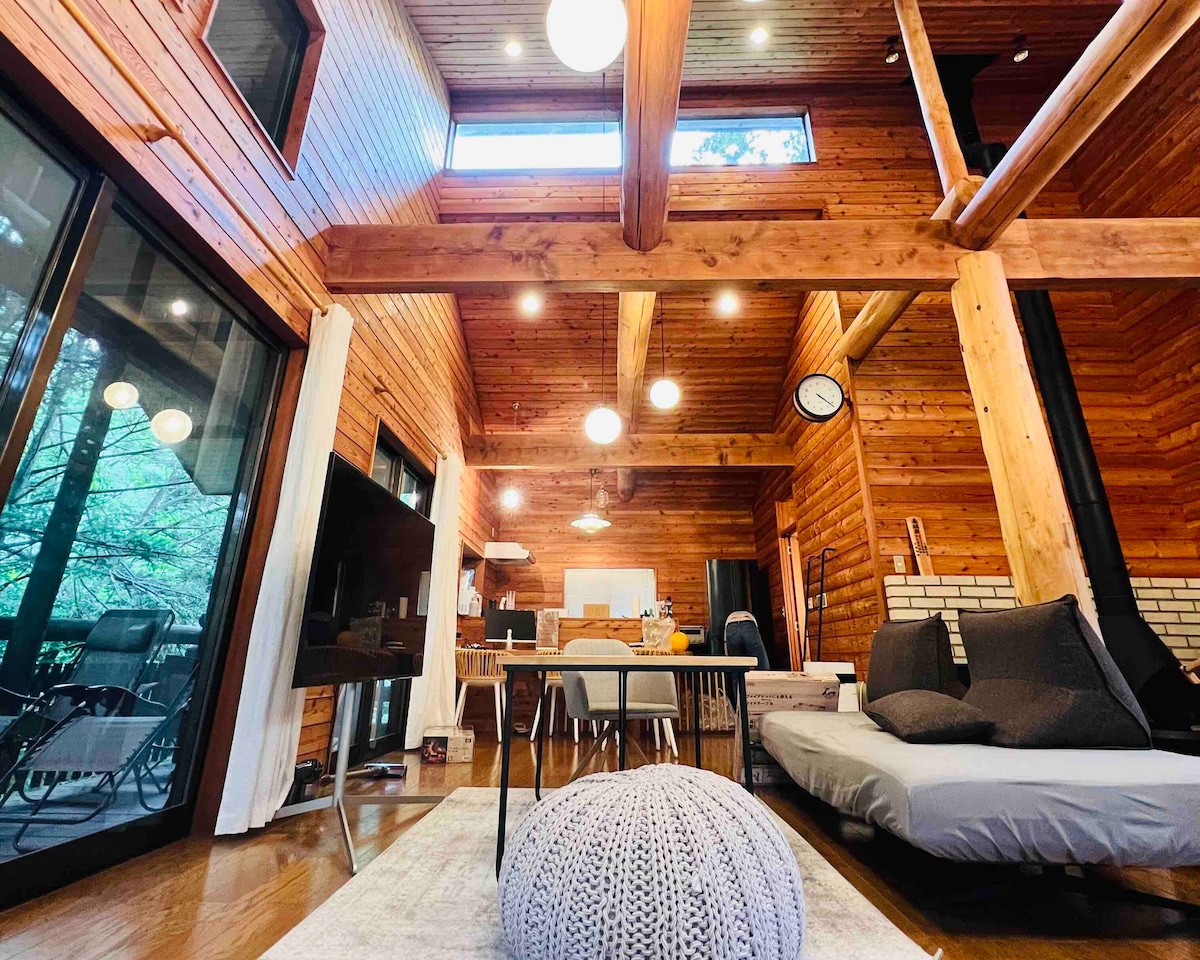 Karuizawa Panoramic House – Stunning Views Stay longer and save more! Get 10% off when you book 2 nights or more This hilltop villa offers a peaceful escape with views of Mt. Asama and Nagano mountains. 174㎡, up to 8 guests. Enjoy seasonal scenery, a barrel sauna, a wood stove, jacuzzi, floor heating, espresso machine, and bring up to 4 small/medium or 2 large dogs. Quiet, nature-rich location near sightseeing, shopping, and skiing.