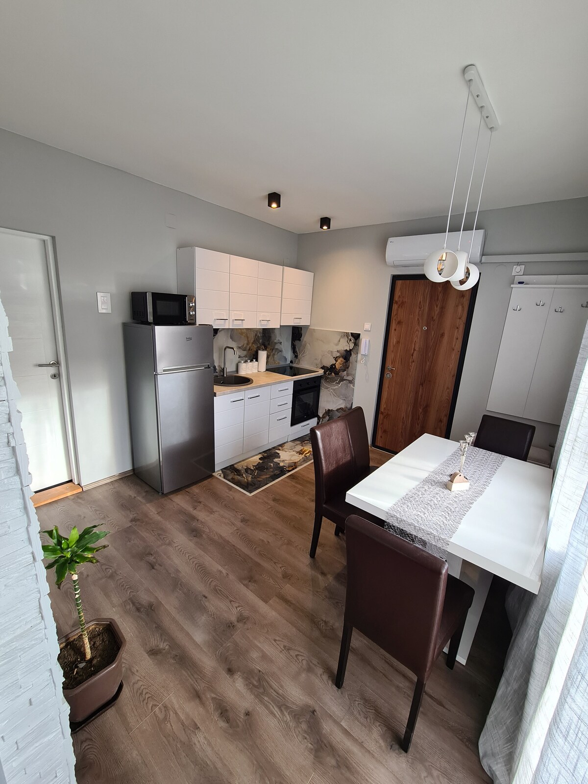 Das Apartment-Studio „Ana 6“ befindet sich im zweiten Stock unserer Unterkunft und umfasst eine Fläche von 30 m ². Es verfügt über ein französisches Bett, ein Zustellbett, eine Küche, ein Badezimmer und einen Flur. Dies ist die einzige Wohnung in unserem Angebot, die leider keine Terrasse hat. An den Fenstern befinden sich PLISA-Mückennetze und Alu-Jalousien und an den Wänden thermische Dämmung, die einen angenehmen Aufenthalt in den Sommer- und Wintermonaten ermöglicht. Das Apartment verfügt zudem über eine Zentralheizung.
