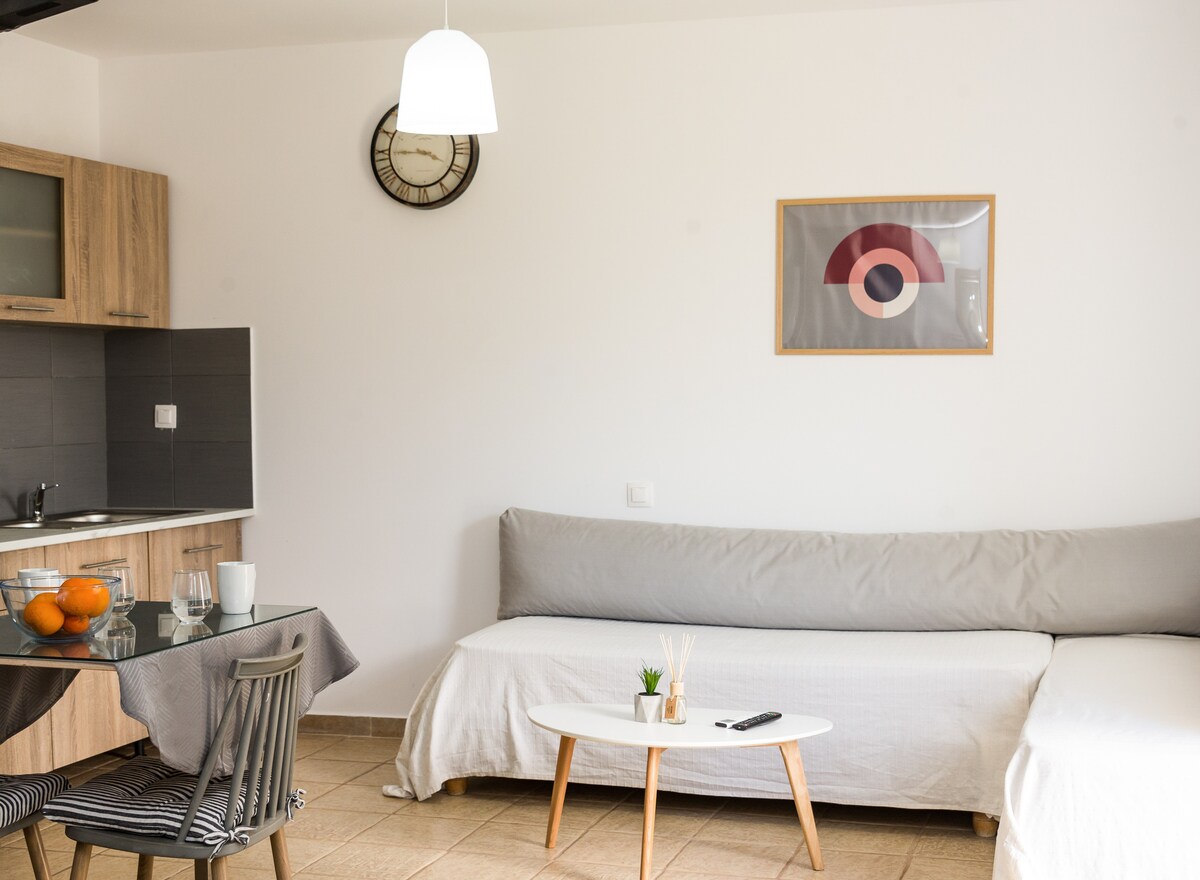 Das Zimmer verfügt über ein Doppelbett (180 x 200 cm), ein EINZELBETT (90 X 200) und ein Schlafsofa (85 x 195 cm) . Genieße moderne Annehmlichkeiten wie kostenfreies WLAN, Klimaanlage und eine vollausgestattete Küche in einem Raum, der Eleganz und Funktionalität nahtlos kombiniert. Das Meer ist nur 5 Minuten mit dem Auto oder einem 8-minütigen Spaziergang entfernt. Bitte informiere uns vor deiner Abreise, wenn du eine Quittung oder eine Rechnung benötigst.