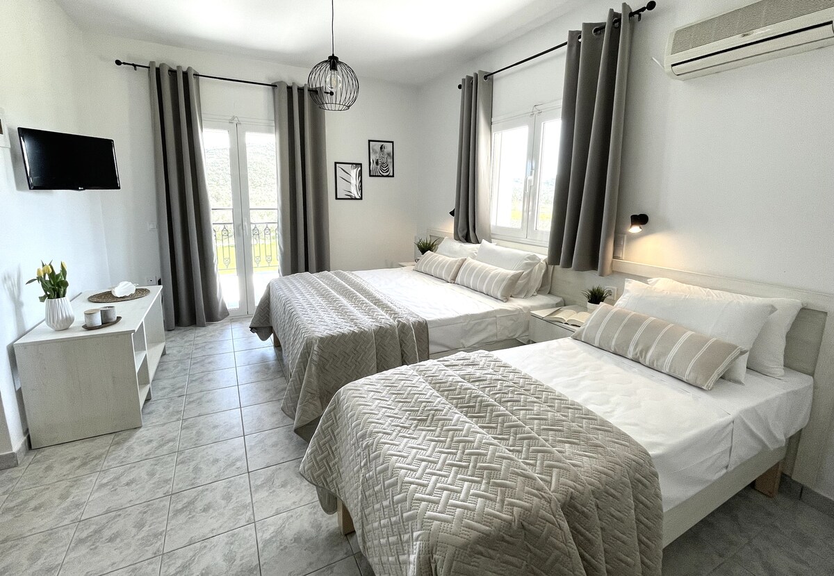 Willkommen in unserer hellen und eleganten Wohnung, 2,5 km vom Flughafen von Zakynthos entfernt. Unser Haus befindet sich in einer ruhigen und günstigen Gegend, nur wenige Minuten von schönen Stränden, Restaurants, Supermärkten und mehr entfernt. Die Wohnung verfügt über ein komfortables Doppelbett und ein Einzelbett, eine voll ausgestattete Küche, einen gemütlichen Wohnbereich, eine Klimaanlage, kostenfreies WLAN, ein Badezimmer und einen Aufzug. Wir freuen uns schon darauf, dich bei uns begrüßen zu dürfen und dir während deines Aufenthalts in Zakynthos das beste Erlebnis zu bieten!