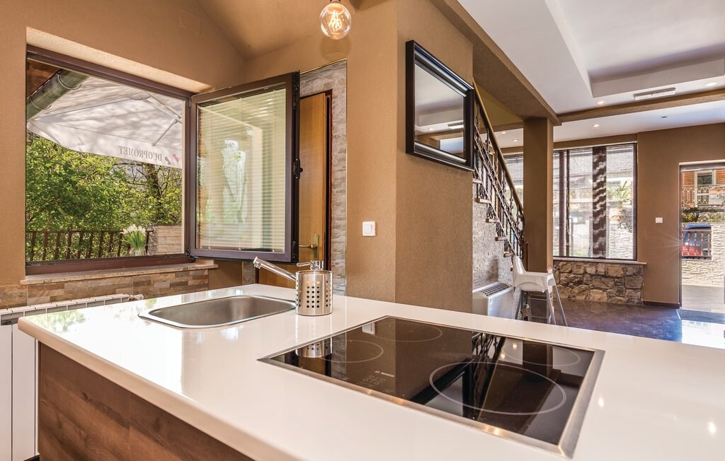 This gorgeous Villa is located on a hill above Opatija. It can accommodate up to 10 people and is perfect for families, a group of friends or couples. This luxurious Villa will make you fall in love in it's open space stylish interior full of real eye-catching details, but most off all the breathtaking view of the sea and complete Kvarner Bay. The Villa has wonderful 5 bedrooms with panoramic Seaview, each has own bathroom and walk in closet. There is also a barbecue, private parking for 5cars.