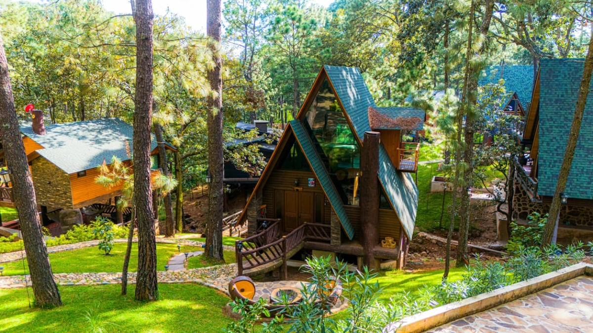 Gemütliche Hütte ideal für Paare, in Waldgebiet und in perfektem Zustand. Ausgezeichnet, um sich auszuruhen und der Routine zu entfliehen. Einfacher Zugang zur Straße, die Sie direkt ins Zentrum von Mazamitla führt. Das Hotel liegt 7 km vom Zentrum des schönen Pueblo Mágico de Mazamitla, Jalisco.