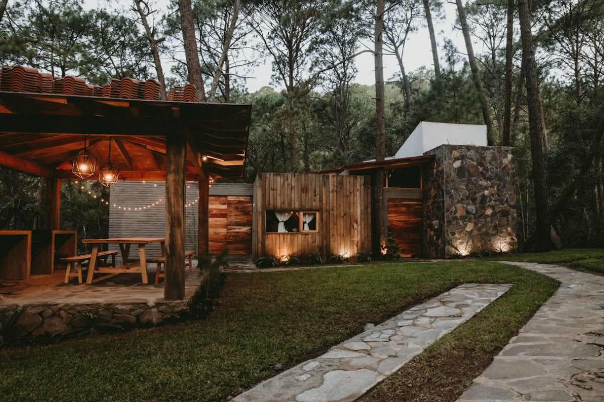 Gemütliches Mini-Ferienhaus mit Kamin und Whirlpool für Paare, in der Nähe der Natur und 5 Autominuten von der Innenstadt von Mazamitla, private Fraktionierung und umgeben von Kiefern, verbringen Sie ein unvergleichliches Wochenende. Wir haben Netflix und Starlink-Internet.