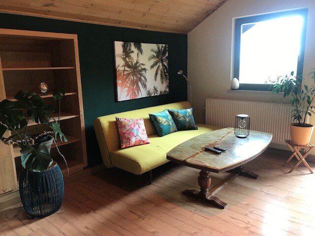 Hallo zusammen🌻 Wir laden euch herzlich ein, Urlaub bei uns im Landkreis Cham zu machen. Unsere gemütliche Ferienwohnung wird derzeit von mir bewohnt, ist aber dennoch immer mal wieder frei für Urlaubsgäste :) Auf der Terrasse (mit Hollywoodschaukel) und im Garten (egal ob an der Lagerfeuerstalle, beim Gemüsegarten oder auf der Streuobstwiese) könnt ihr hier fernab vom Alltag, zwischen Hühnern, Katzen & Co entspannen. 🌞