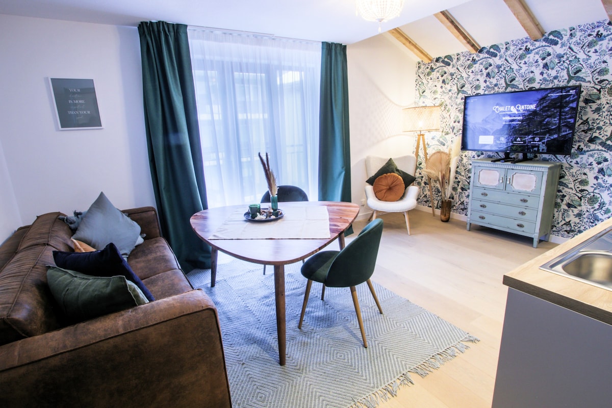 Im Zentrum der Stadt gelegen, schöne Landschaft, modern und hell🍀 Privat: - 1 Zimmer mit herrlichem Bergblick, ausgestattet mit einem 180 cm großen BoxSpring King-Seize Bett - Voll ausgestattete Küche, Feuertopf🫕, Gewürze🌯, Geschirrspüler, Backofen, Mikrowelle usw. - Geräumiges modernes Badezimmer mit 3 Duschmodi - 65-Zoll-TV, Highspeed-Internet🛜 Gemeinsam genutzt: - Schöne schattige Terrasse, Kinderspielplatz - Infrarotsauna im Gebäude - Bücher und Brettspiele🧩📚 Die ideale Wahl für Liebhaber, Freunde oder Alleinsein! 🌷👙🫧🩳🩱🚠🧗♀️🌞🍄⛷️☃️