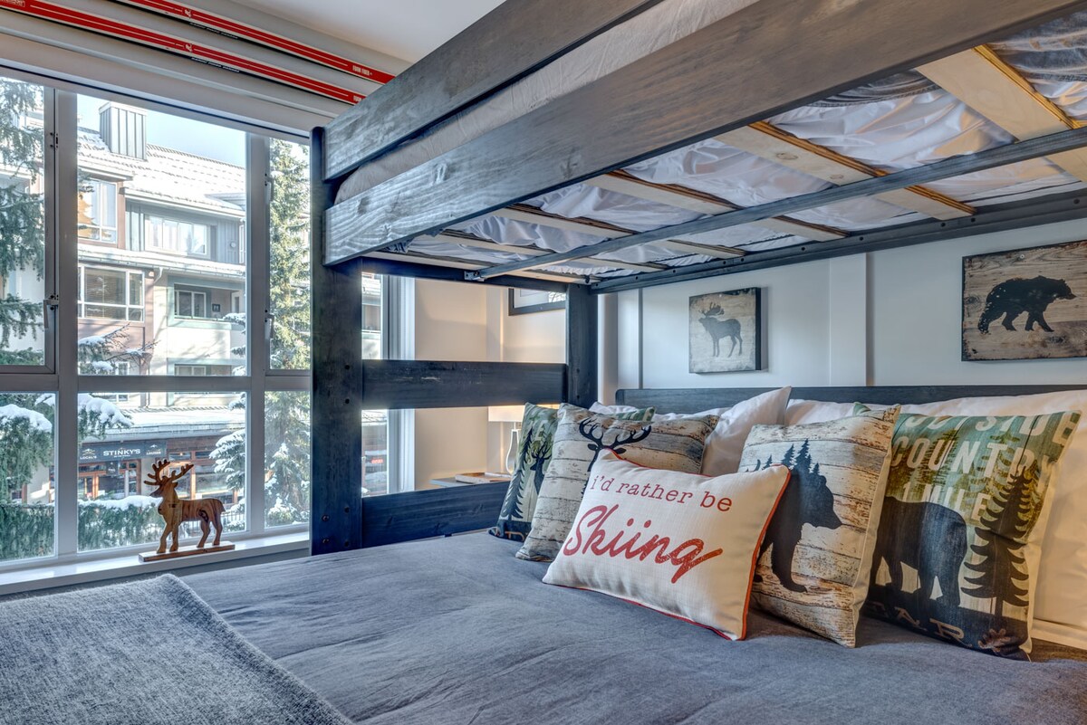 Unique mountain style 2 bedroom and loft, 1 bathroom is located in the CENTER of Whistler Village! Amazing views of both Whistler and Blackcomb mountains and the famous WHISTLER VILLAGE SQUARE! Top floor, 2 level, 2 bedroom lofted condo with a cozy living room, flex loft space, fully equipped kitchen and large dining space. It's located centrally to everything Whistler has to offer! 2 minute walk to the gondolas and ski lifts! 1 minute walk to bus station and taxi loop! *Free Parking*