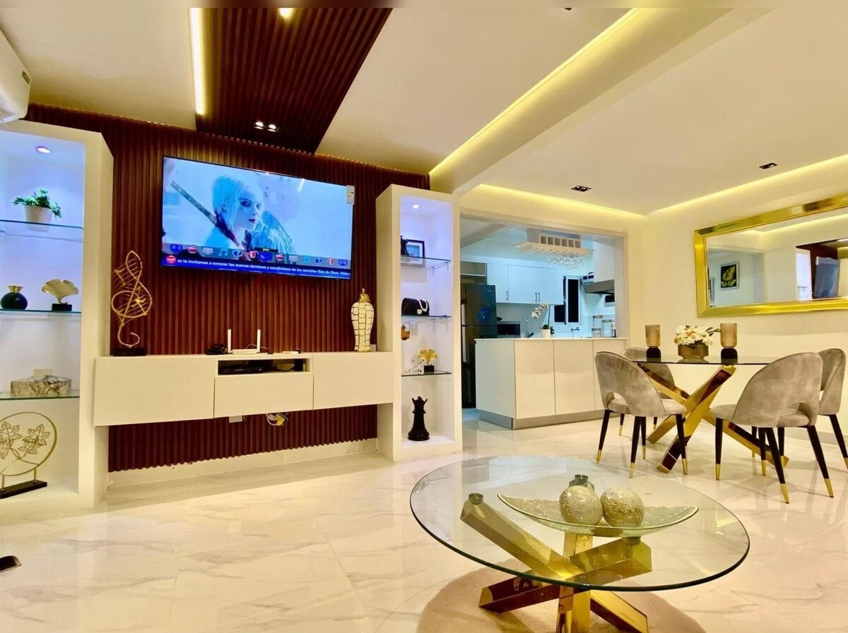 Hab Spaß mit der ganzen Familie in dieser stilvollen Unterkunft. Mit der Privatsphäre und den notwendigen Einrichtungen, um unvergessliche Momente zu haben. Sie verfügt über eine voll ausgestattete Küche, ein voll ausgestattetes Badezimmer in jedem Zimmer, wir haben Klimaanlage in jedem Zimmer, wenn es Strom gibt. Es gibt Ventilatoren in der Wand und Deckenventilatoren im Wohnzimmer. Eingabe mit einem Zugangscode # Es ist eine 4. Etage, es gibt keine Aufzüge! Aber wir bieten Hilfe mit dem Gepäck an, solange du mir vorher Bescheid gibst.