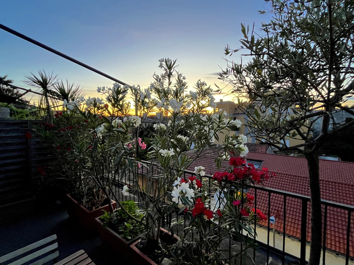 OpenAir, ein modernes und elegantes Penthouse neben Corso Sempione. Das Penthouse verfügt über eine 55 m2 große Terrasse, 3 Doppelzimmer, 2 Badezimmer, ein Wohnzimmer mit Küche,Klimaanlage. Tolle Lage, um den Dom mit den Straßenbahnen 1/19 2 Minuten von zu Hause zu erreichen. Wenn du gerne gehst, bringen dich die neuen Gehwege des Corso in 15 Minuten zum Parco Sempione. Mico,City Life und ChinaTown sind 10 Minuten entfernt. Der nahe gelegene Samstag- und Dienstagmarkt ist lebhaft. New Terme Montel ist mit der U-Bahn oder dem Bus in 20 Minuten erreichbar.
