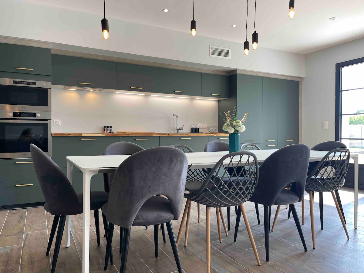 Villa d’architecte neuve de 170 m², classée 5 étoiles meublé de tourisme, proche plage, commerces et forêt. 4 chambres climatisées avec 4 salles de bains privatives. Le salon lumineux s’ouvre sur la terrasse grâce à de grandes baies vitrées à galandage, pour une vraie vie dedans-dehors. Terrasse en bois exposée sud-ouest, piscine chauffée et sécurisée. Cadre paisible entre nature et océan. Conciergerie incluse pour un séjour tout confort.